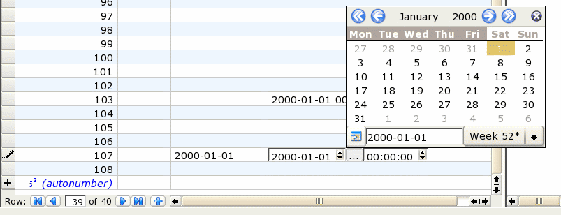 Date/time datatype editing