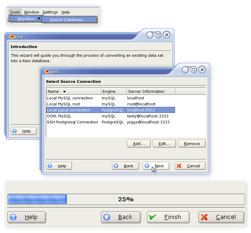 Importing external databases (MySQL, PostgreSQL, MS Access)